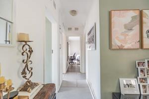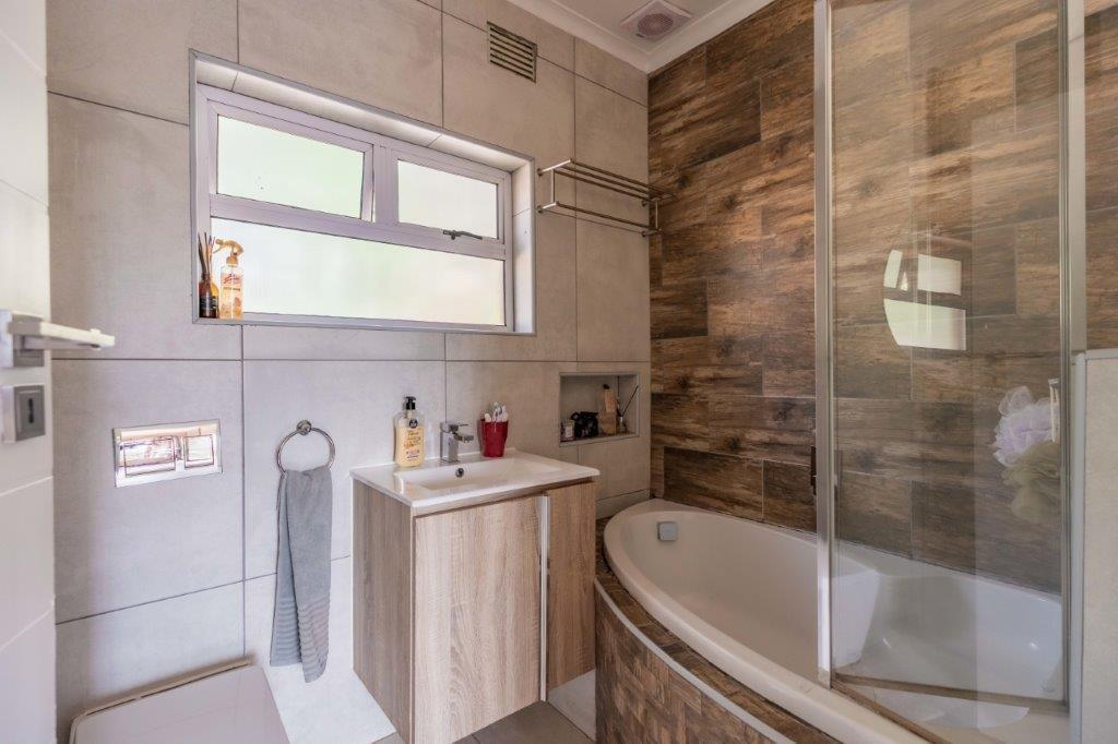 The outdoor space is designed for relaxed living, with a level garden that’s perfect for kids and pets and a sparkling pool for warm summer days. A sheltered entertainment area overlooks the garden, creating an ideal spot for casual gatherings or unwinding after work.